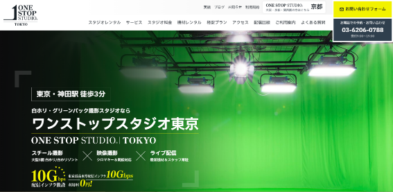 ワンストップスタジオ東京は、実績豊富なテクニカルスタッフがライブ配信をサポートするスタジオです。高速インターネット回線とバックアップ回線を完備しており、安定した配信ができます。4K対応カメラや照明、スイッチャー、グリーンバックを標準装備し、防音性に優れた設計でクリアな音響環境を提供しています。